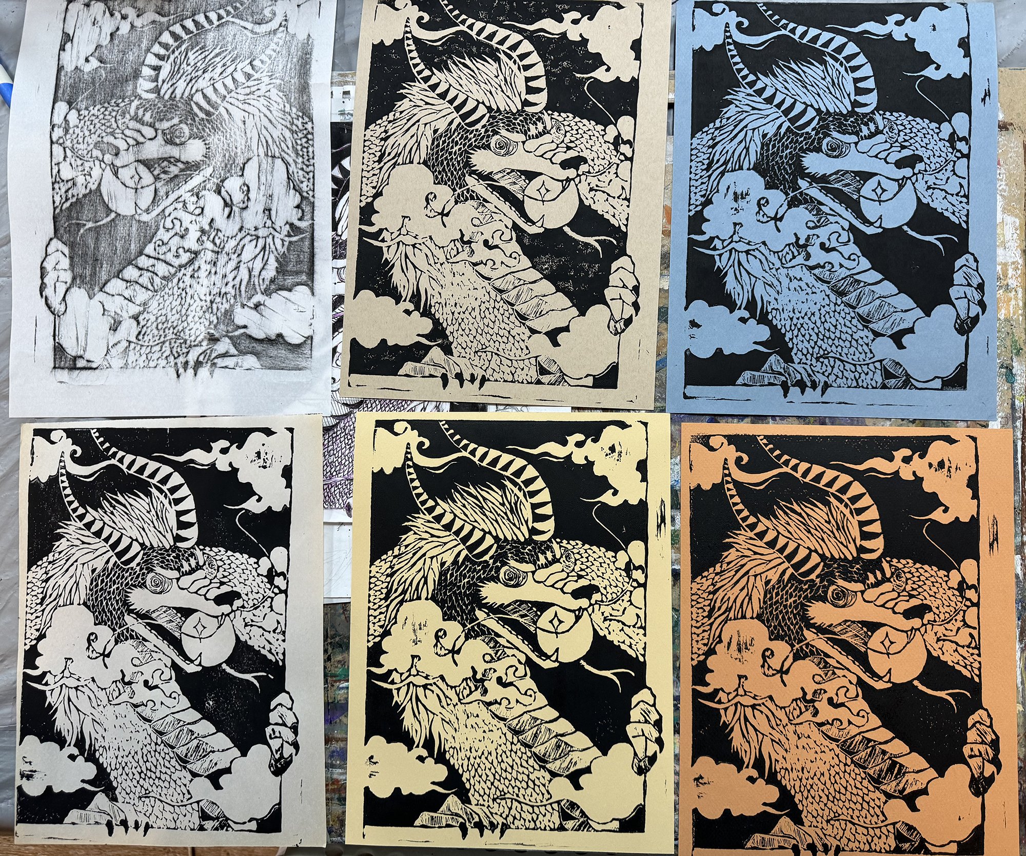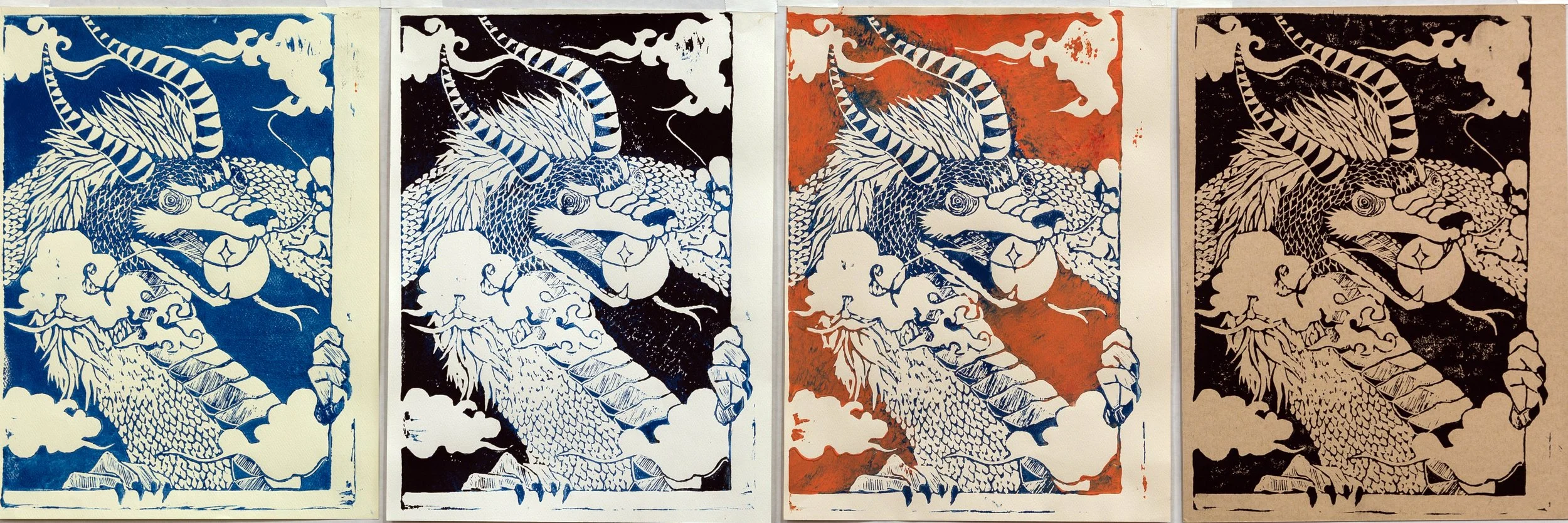 40.5 in x 15.75 in (total); 8.25 in x 11.5 in (eachx4) | Print Ink on paper, linoleum block | 2024